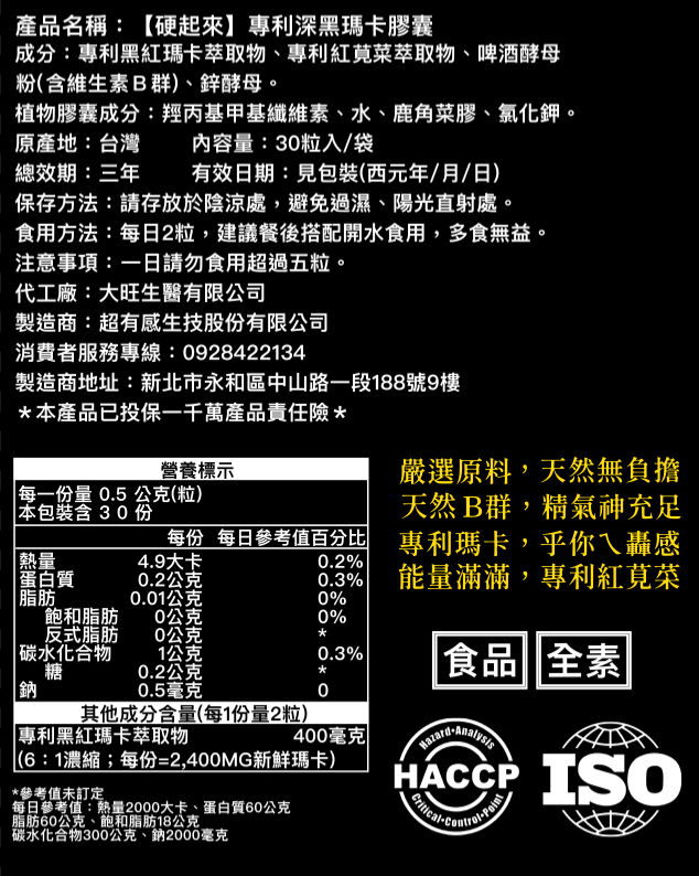 產品名稱:【硬起來】專利深黑瑪卡膠囊
